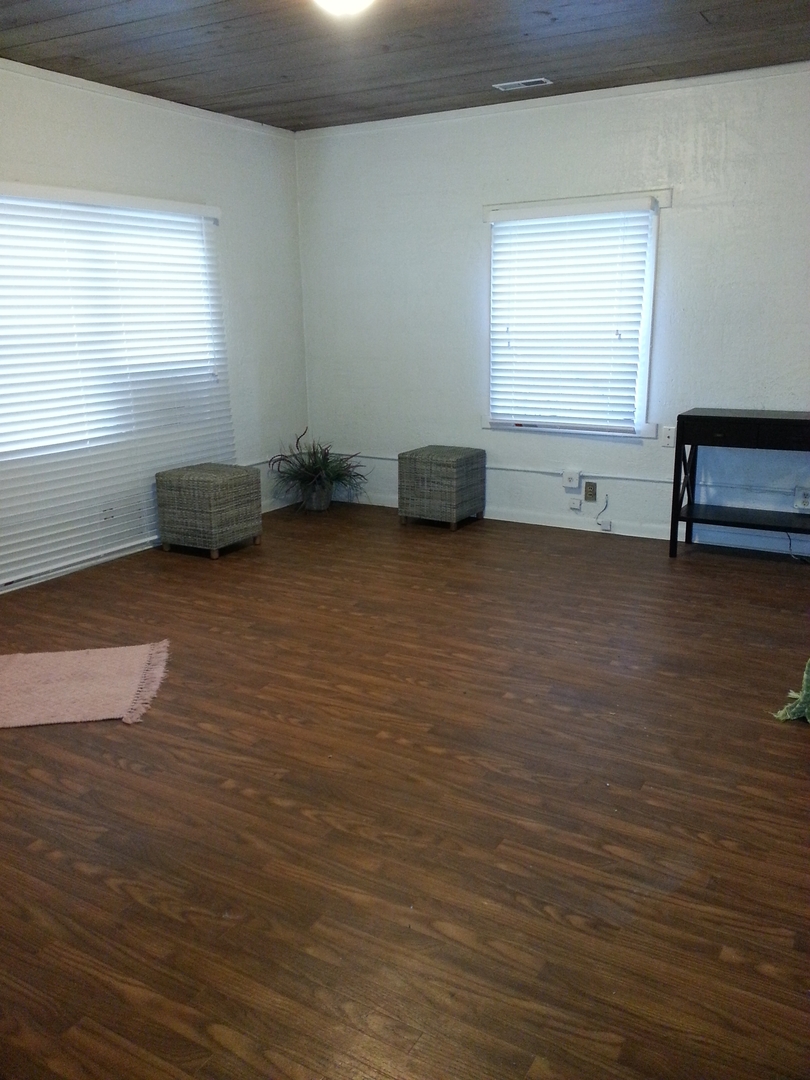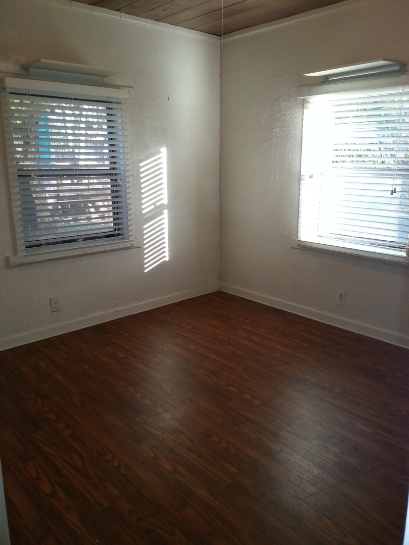 2 bedroom, 1 bathroom ranch style house with laminate floor throughout. Includes: Stove, refrigerator, stackable washer/dryer, shed for outside storage.