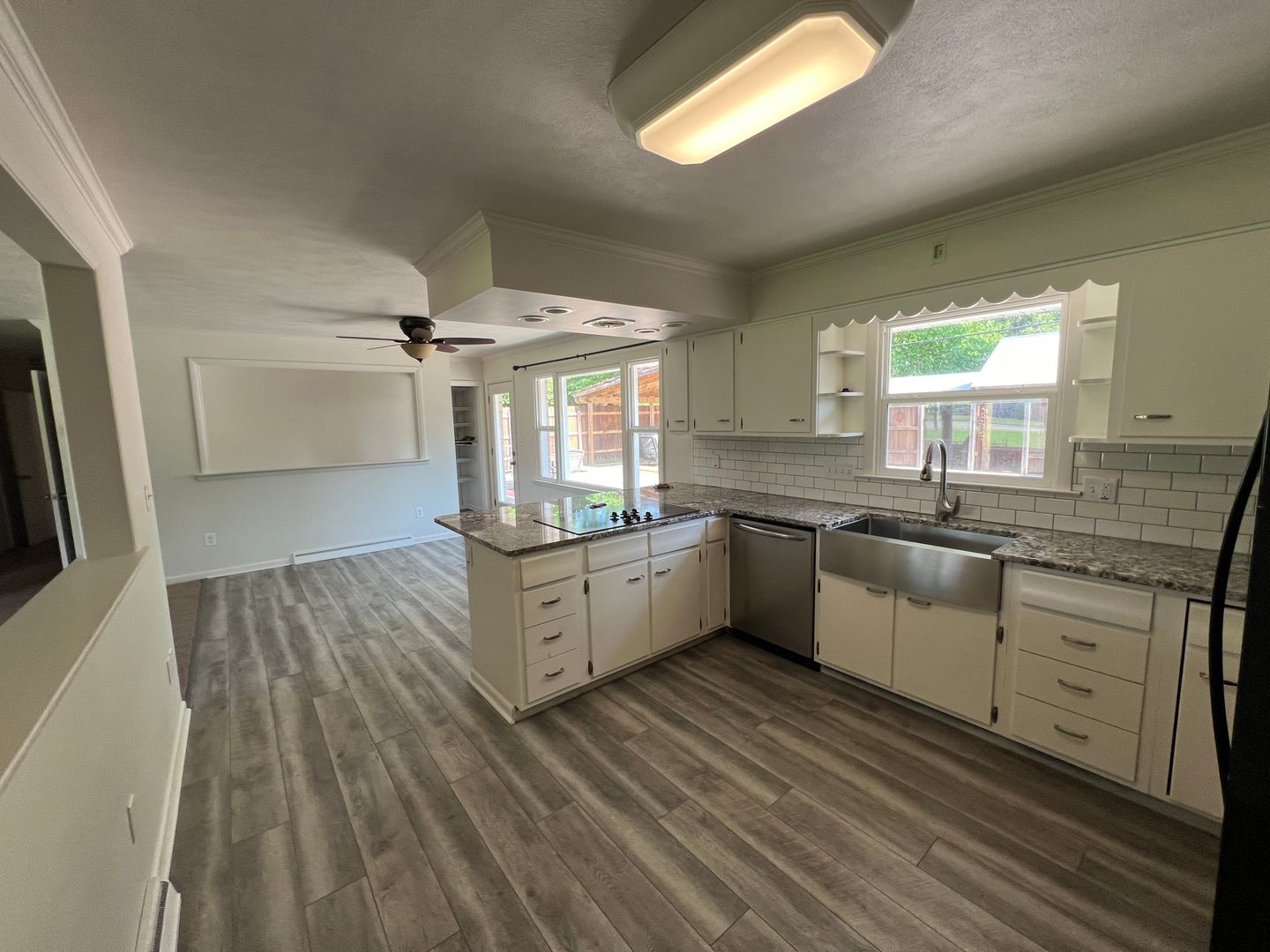 Huge ranch-style house over a finished basement with open space concept. Home provides 3 bedrooms + One room for study or storage space. Everything freshly updated! The backyard brings a private paradise setting, fully enclosed fence, which includes a gazebo and private fenced in rooms in the corners. This home sits on a corner lot which allows a circle drive and major curb appeal. Attached 2-Car garage! The kitchen creates a great space for entertaining, as it is an open feel with all the top appliances and farmhouse sink! Home has 3 bathrooms. One of the bathrooms was a bedroom, converted into a bathroom, which leaves an open space to get ready, giving the user a choice between soaking into a deep spa-like tub or a grand shower. You'll come out feeling refreshed in no time! 2 bathrooms are newly finished, while keeping a retro vibe. Home offers plenty of space, as it has a living room upstairs and a family room with fireplace downstairs. Owners will mow every other week and any more will be the tenant's responsibility. Washer/Dryer are in the home, however the owners do not maintain.