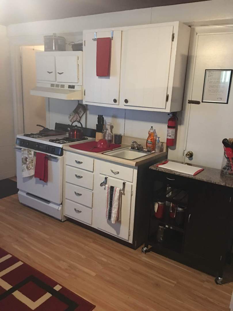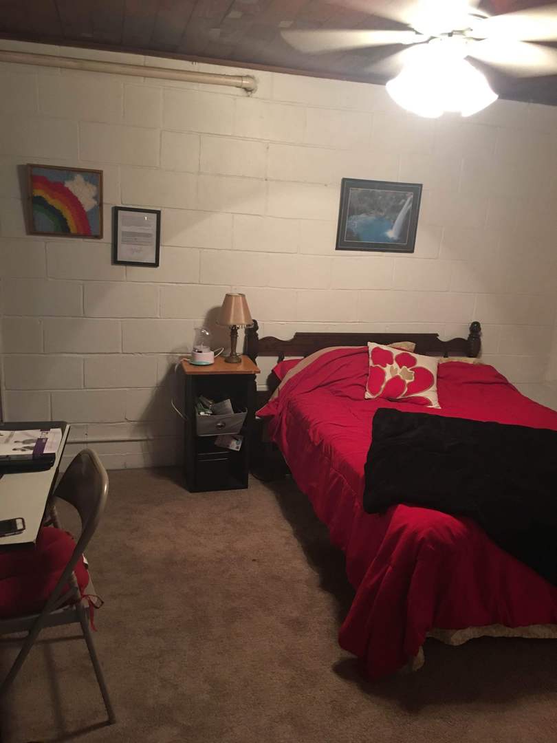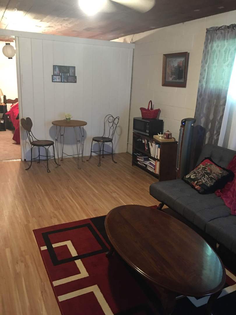 This is a large efficency apartment in a four plex. It has carpeted floors in the bedroom and hardwood laminate in the living room., Has a walk in closet. Tenant pays no utilities and has off street parking.